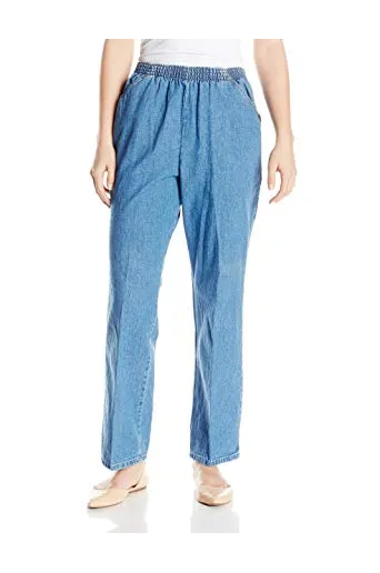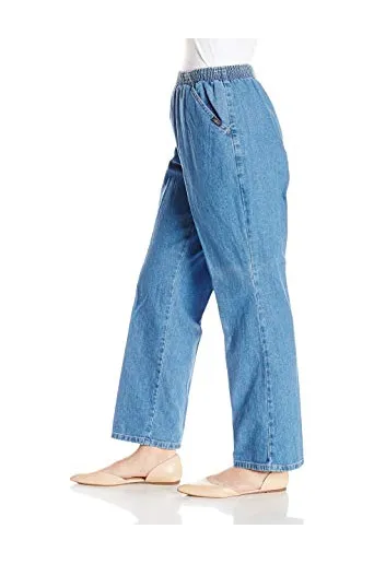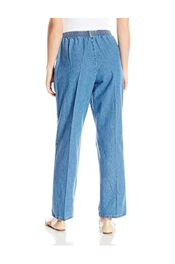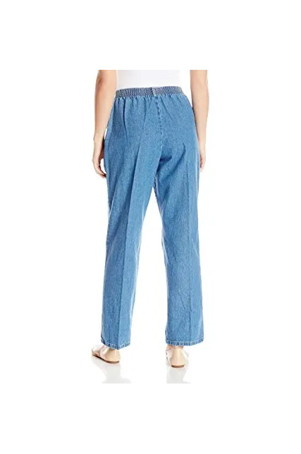 - Cotton pull-on pant with high-rise elastic waist, front pleat, and front slant pockets
