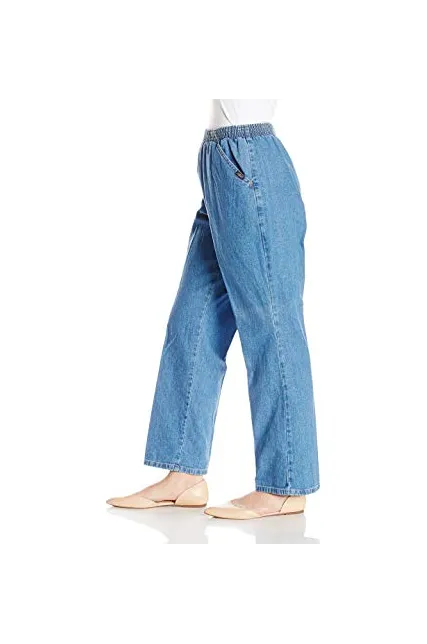 - Cotton pull-on pant with high-rise elastic waist, front pleat, and front slant pockets