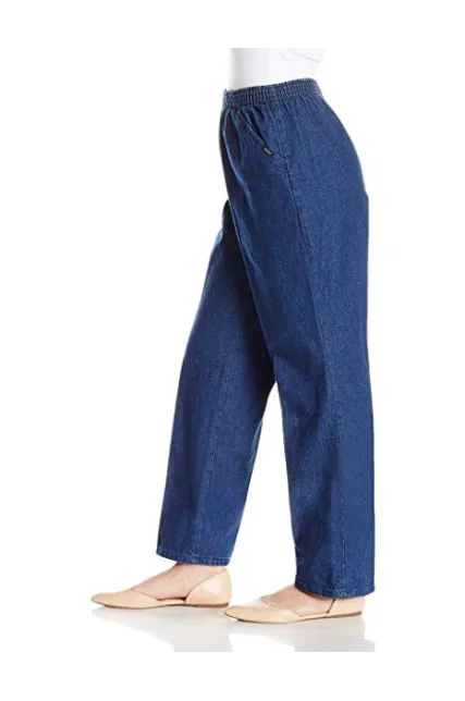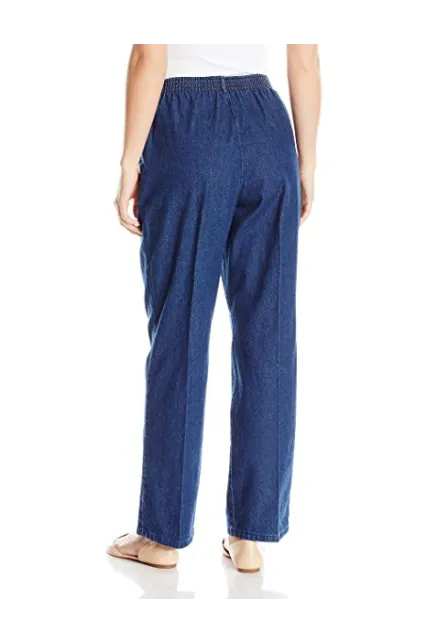 - Cotton pull-on pant with high-rise elastic waist, front pleat, and front slant pockets
