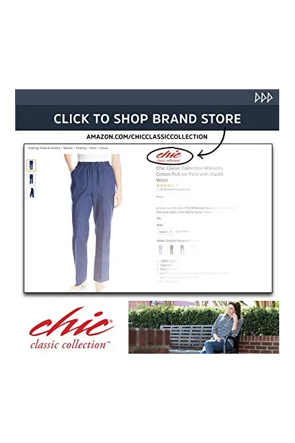 - Cotton pull-on pant with high-rise elastic waist, front pleat, and front slant pockets