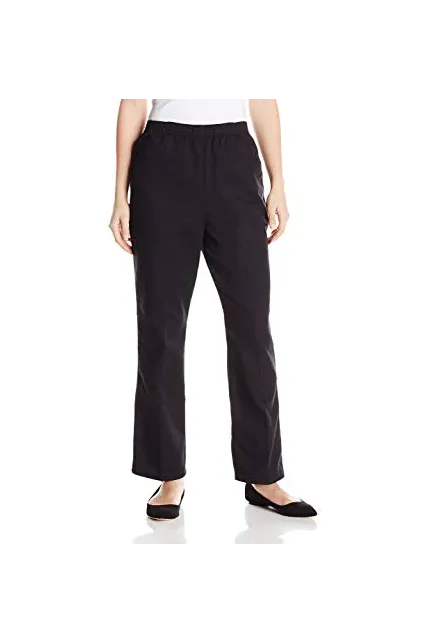 - Cotton pull-on pant with high-rise elastic waist, front pleat, and front slant pockets