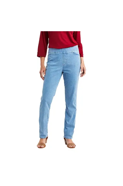 - Pull-on skinny jean in stretch denim with flat elastic waistband