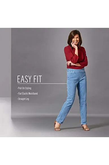 - Pull-on skinny jean in stretch denim with flat elastic waistband