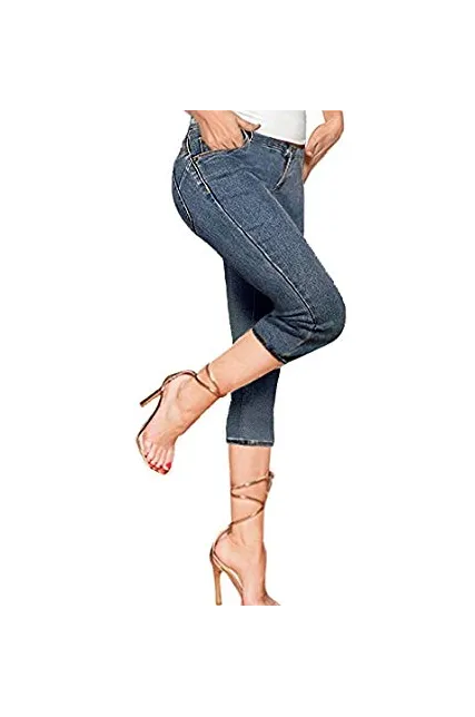- Lift those assets with this stretchy capri pant that combines the look of denim with the comfort of your favorite yoga pants. Pair with your newest pair of sneakers to show off while on the go.