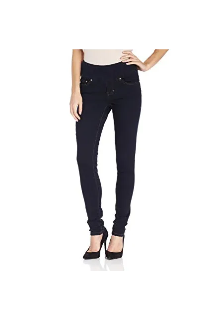 - Skinny-fit jean featuring pull-on waistband and classic 5-pocket styling
