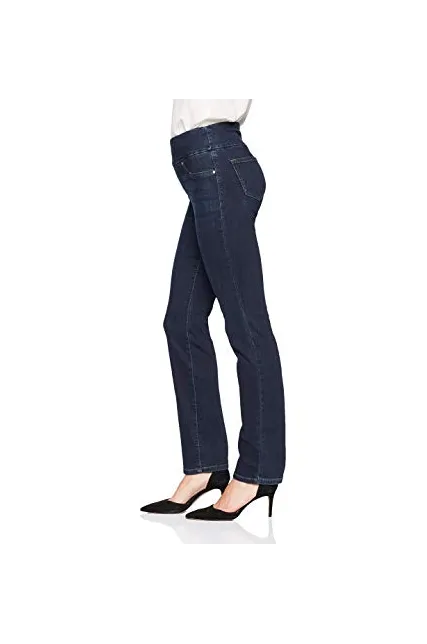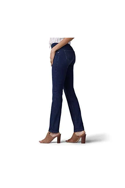 - Mid rise, slim fit with pull on elastic waistband