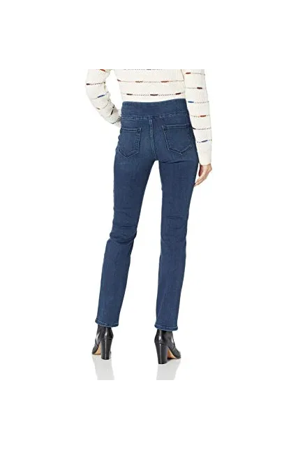 - Mid rise, slim fit with pull on elastic waistband