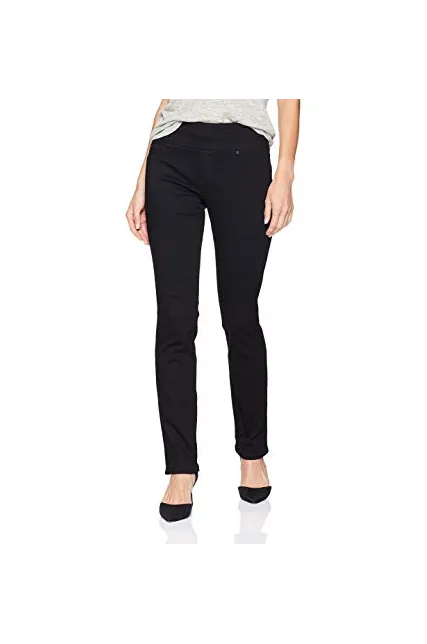 - Mid rise, slim fit with pull on elastic waistband