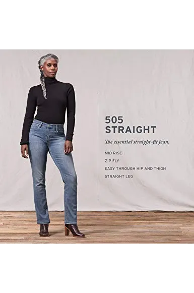 - Mid stretch denim with a straight leg and easy fit through hip and thigh