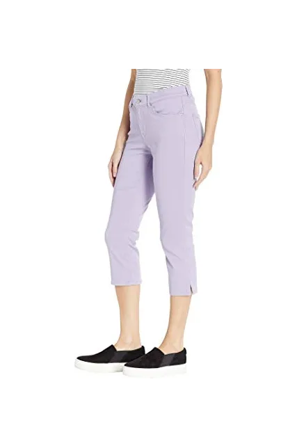 - Mid stretch denim and slim through hip and thigh; side slits at hem