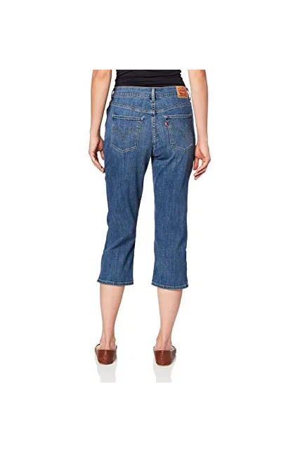 - Mid stretch denim and easy through hip and thigh; side slits at hem