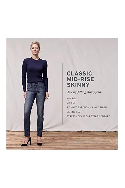 - Mid stretch denim with a skinny leg and slim through hip and thigh