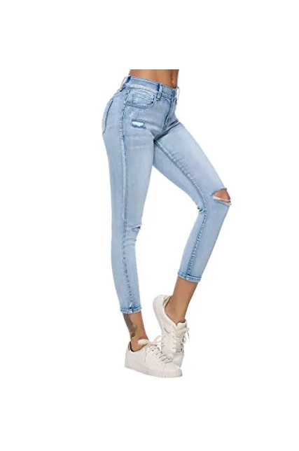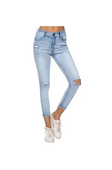 Resfeber Women's Boyfriend Jeans Distressed Slim Fit Ripped Jeans Comfy Stretch Skinny Jeans