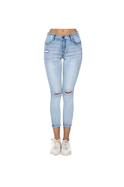 Resfeber Women's Boyfriend Jeans Distressed Slim Fit Ripped Jeans Comfy Stretch Skinny Jeans