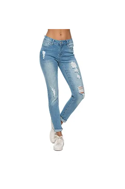 Resfeber Women's Boyfriend Jeans Distressed Slim Fit Ripped Jeans Comfy Stretch Skinny Jeans