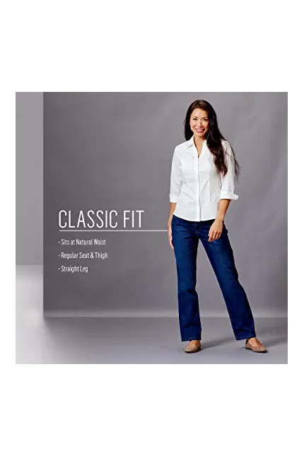 - Straight-leg jean with five-pocket styling and zip fly with button closure
