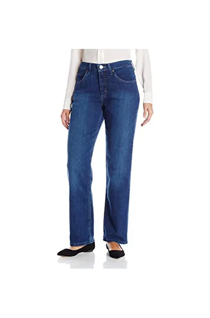 - Straight-leg jean with five-pocket styling and zip fly with button closure