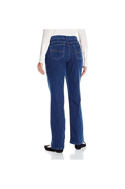 - Straight-leg jean with five-pocket styling and zip fly with button closure