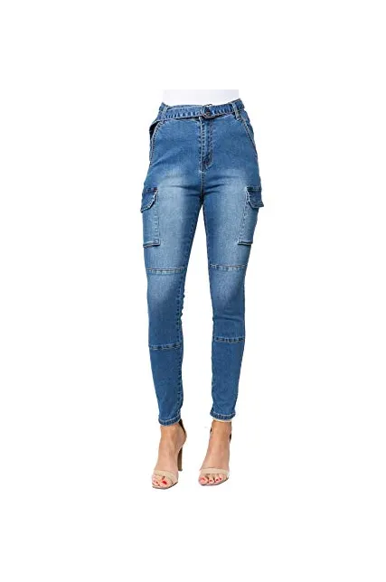 - Modern Zipper Fly Cargo Denim Jeans Pants with Matching Belt.