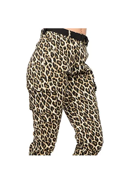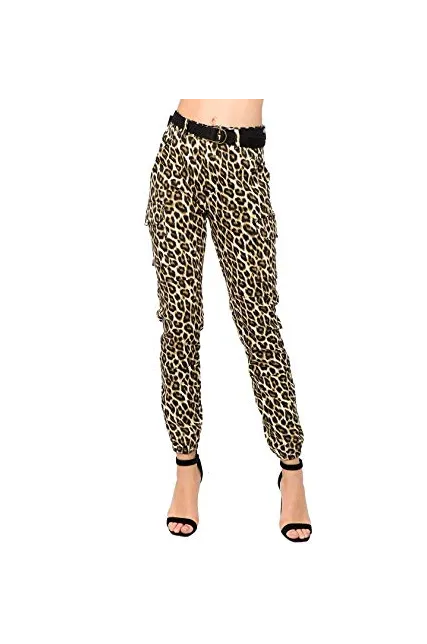 - Modern Trendy Slim Leopard Print Zipper Fly Color Jogger Pants with Removable Belt