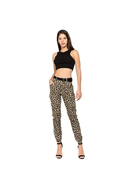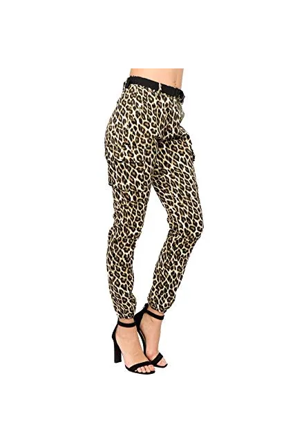 - Modern Trendy Slim Leopard Print Zipper Fly Color Jogger Pants with Removable Belt