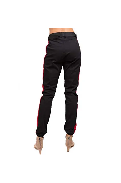 - Modern Side Stripe Zipper Fly Color Twill Jogger Pants with Elastic Hem