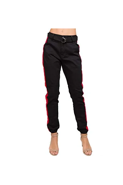 - Modern Side Stripe Zipper Fly Color Twill Jogger Pants with Elastic Hem
