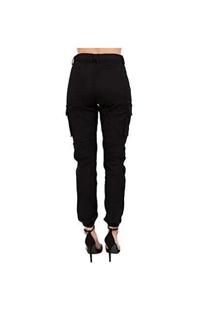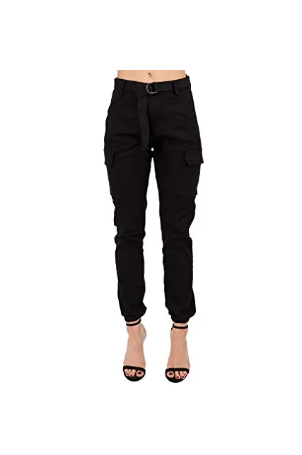 TwiinSisters Women's High Rise Slim Fit Color Jogger Pants Matching Belt - Size Small to 3X