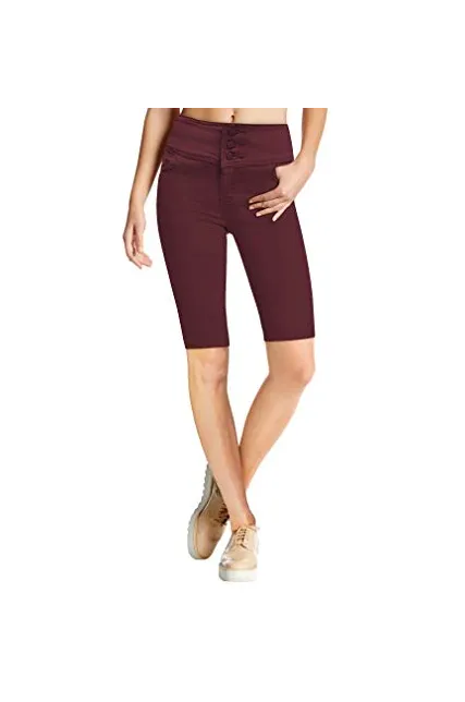 Women Butt Lift 3 Button High Wide Waist Stretch Denim Skinny Jeans Capri Bermuda Short