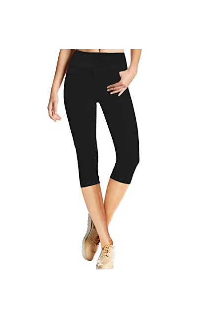 Women Butt Lift 3 Button High Wide Waist Stretch Denim Skinny Jeans Capri Bermuda Short