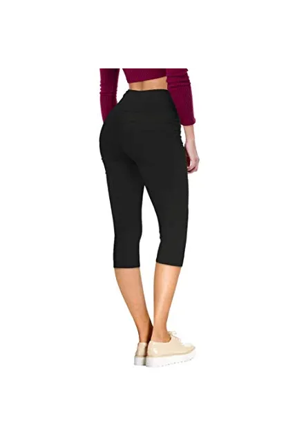 Women Butt Lift 3 Button High Wide Waist Stretch Denim Skinny Jeans Capri Bermuda Short