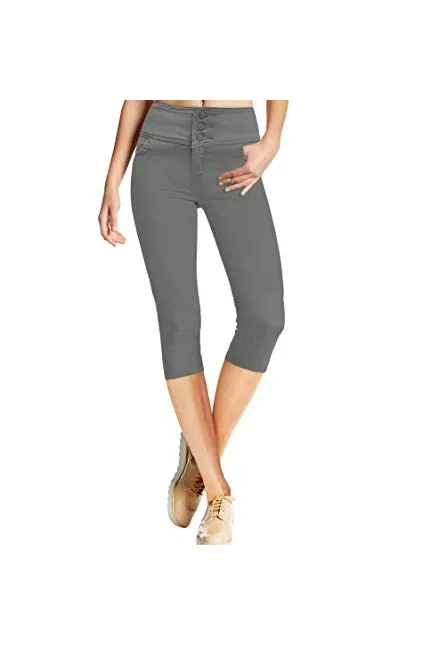 - Lift those assets with this stretchy capri pant that combines the look of denim with the comfort of your favorite yoga pants. Pair with your newest pair of sneakers to show off while on the go.