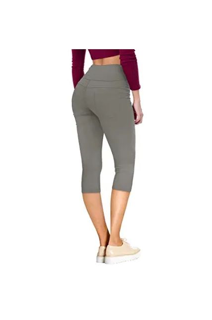 Women Butt Lift 3 Button High Wide Waist Stretch Denim Skinny Jeans Capri Bermuda Short