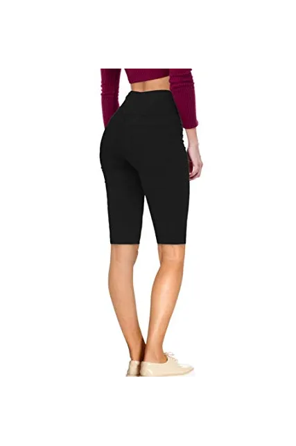 Women Butt Lift 3 Button High Wide Waist Stretch Denim Skinny Jeans Capri Bermuda Short