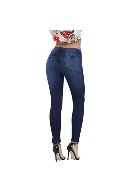 Women's Hight Waisted Butt Lift Stretch Ripped Skinny Jeans Distressed Denim Pants