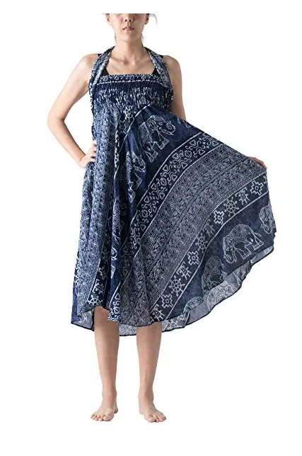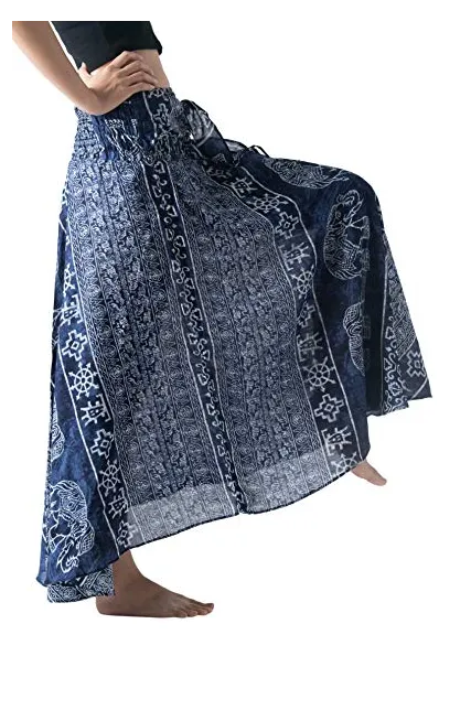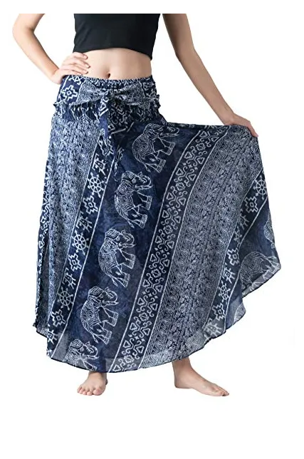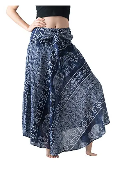 Bangkokpants Women's Long Bohemian Hippie Skirt Boho Dresses Elephant One Size Asymmetric Hem Design