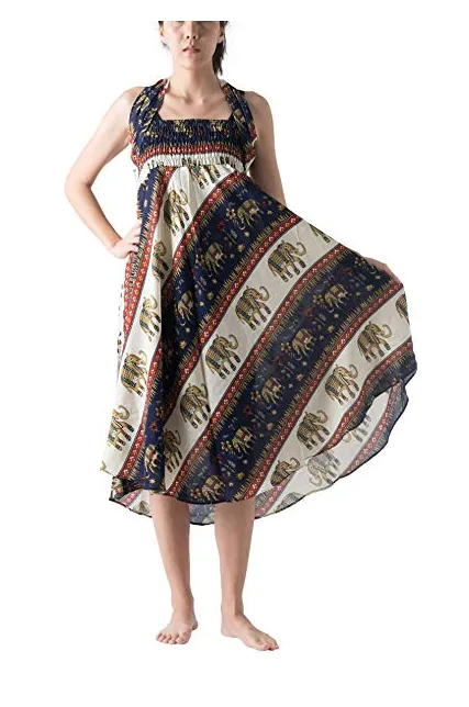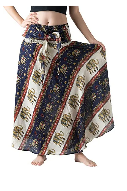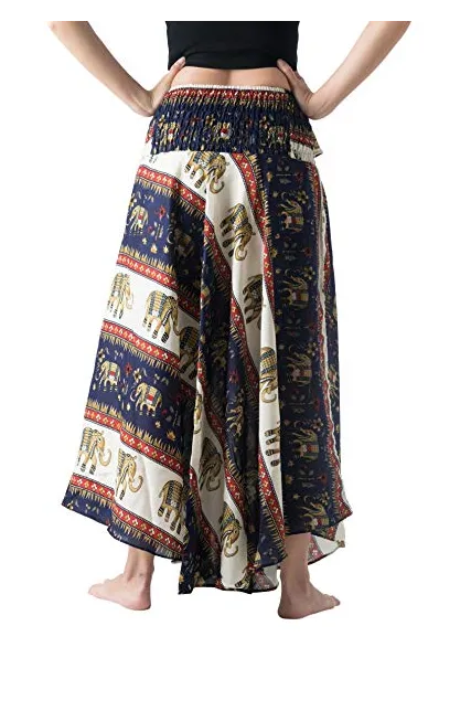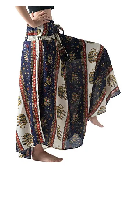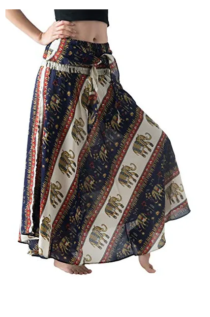Bangkokpants Women's Long Bohemian Hippie Skirt Boho Dresses Elephant One Size Asymmetric Hem Design