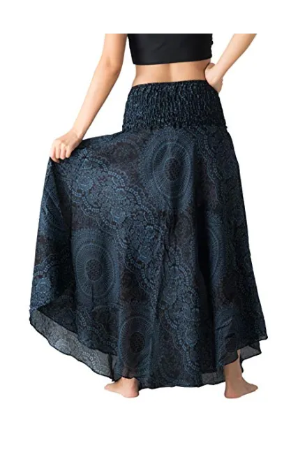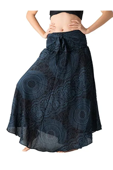 Bangkokpants Women's Long Hippie Bohemian Skirt Gypsy Dress Boho Clothes Flowers One Size Fits Asymmetric Hem Design