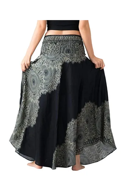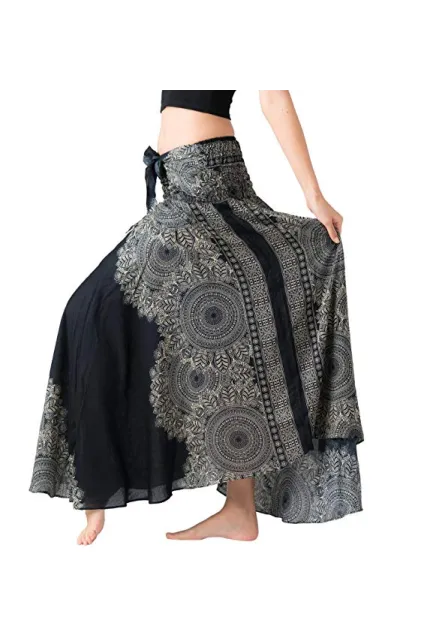 Bangkokpants Women's Long Hippie Bohemian Skirt Gypsy Dress Boho Clothes Flowers One Size Fits Asymmetric Hem Design