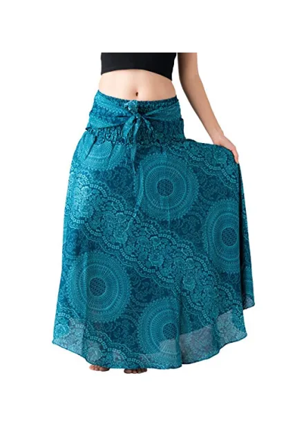Bangkokpants Women's Long Hippie Bohemian Skirt Gypsy Dress Boho Clothes Flowers One Size Fits Asymmetric Hem Design