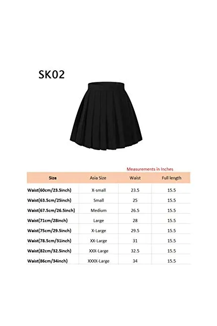 - The Models fitting size: (1). Ally is 5'5 and 127 lbs,order Waist(63.5cm/25inch) (Asian S). (2). Rita is 5'0" and 104lbs,The Waist(67.5cm/26.5inch) is ok, (Asian M). (3). Warner Sister is 5'8" and 155lbs,The Waist(78.5cm/31inch) was perfect, (Asian 2XL). (4). Alexa is 5' 4" and 140lbs,The Waist(82cm/32.5inch) is ok, Asian 3XL. (5). Liz is 5'9" , 170lbs and 10 in US size,got this skirt Waist(86cm/34inch),Asian 4XL.