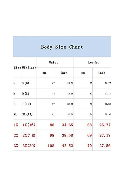 - S=US(2-4) / M=US(6-8) / L=US(10) / XL=US(12-14) / 1X=US(16) / 2X=US(18)/ 3X=US(20)