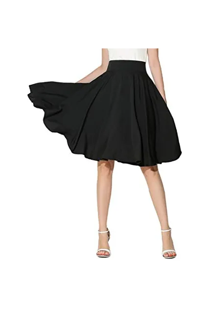 - Solid High Waist Mid Calf Skirt