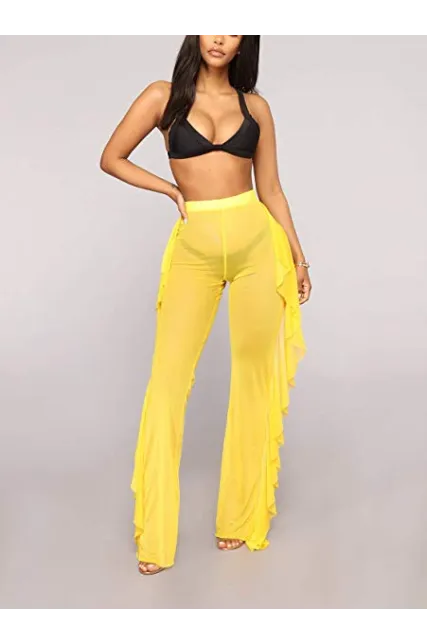 - Swimwear mesh cover up pants featuring a stretchy sheer mesh material, front tie-up closure