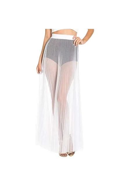 - This sheer maxi skirt featuring an all over stretchy sheer mesh material, knife pleated design and elastic waist band for easy slip on