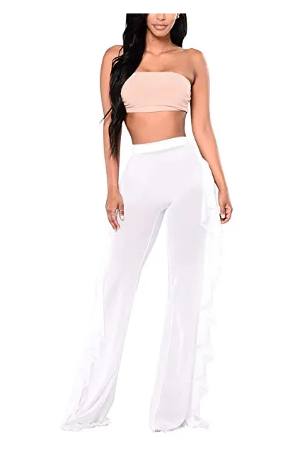 - Swimwear mesh cover up pants featuring a stretchy sheer mesh material, front tie-up closure