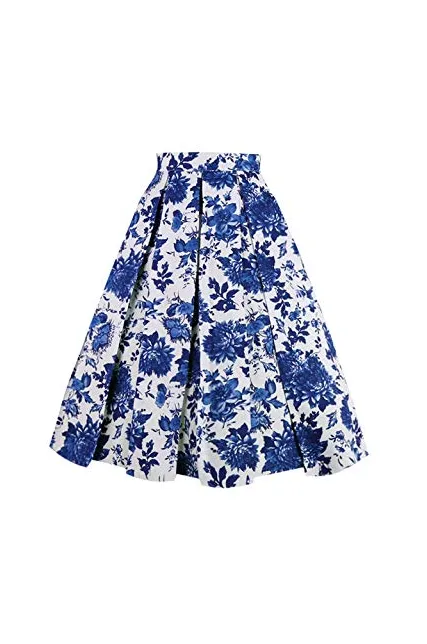 - Features:vintage printed patterns, a-line, high waist, with pockets