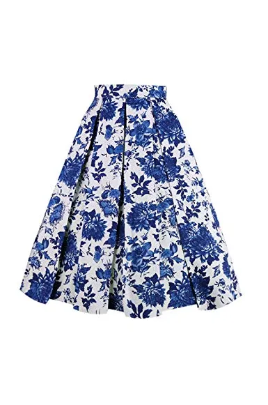 - Features:vintage printed patterns, a-line, high waist, with pockets