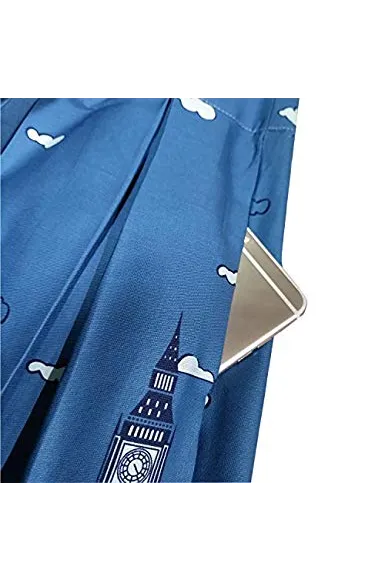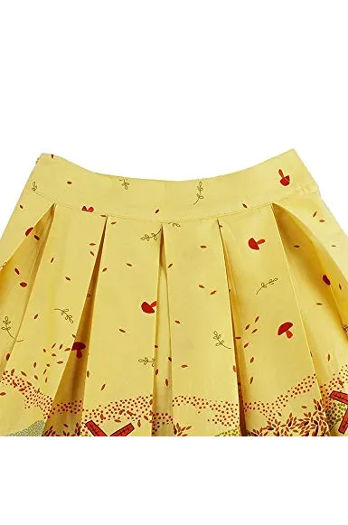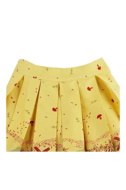 - Features:vintage printed patterns, a-line, high waist, with pockets
