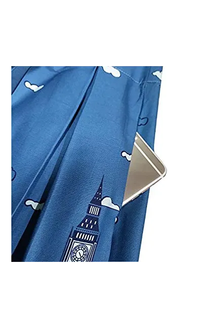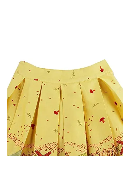 - Features:vintage printed patterns, a-line, high waist, with pockets